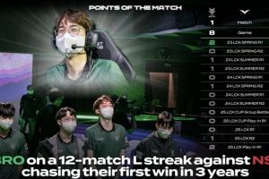体育资讯4月19日讯 今日LCK常规赛将迎来BRO对阵NS的比赛,赛区官方给出了两队的交手记录,目前BRO面对NS 12连败中!
