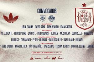 西班牙本月将在国内进行两场热身赛,分别是北京时间3月28日凌晨4点对阵塞尔维亚、3月31日凌晨1点对阵埃及。